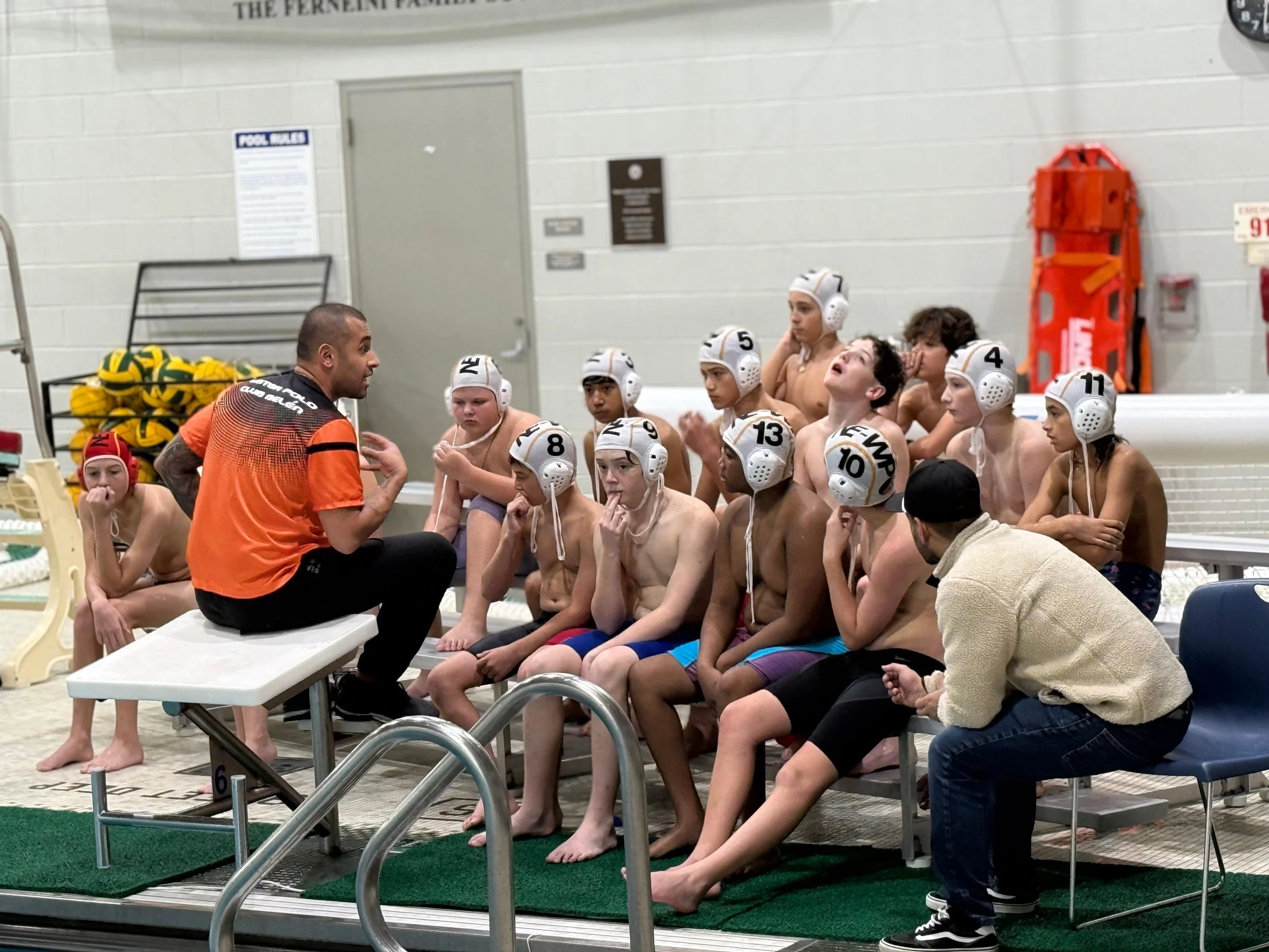 A training program designed to enhance water polo performance through focused instruction on advanced swimming techniques, ball handling, offensive and defensive strategies, game tactics, and physical conditioning, primarily aimed at athletes with existing water polo experience looking to compete against other teams at a high level.